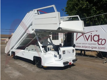 This TLD ABS-580 self-propelled passengers stairs provides access under the best possible conditions of safety and comfort forpassengers of narrow, medium and wide body aircraft with a door sill height between 2,20 and 5,80 m.The stair is a telescopic stairway type and its height may be adjusted step-by-step allowing the passengersto embark and disembark in total comfort.The extruded-aluminium steps have a highly efficient non-slip surface, offering additional safety, anodised handrailsand bright stairway lighting.All driving and aircraft approach operations are carried out from the open driving station (option Driving cab),which provides perfect visibility of aircraft. These operations are carried out under the best conditions of safetyand comfort.