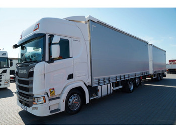 Тентованный грузовик Scania R 450 / ZESTAW TANDEM 120 M3 / PRZEJAZDOWY / OŚ