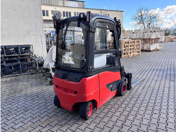 Pedals: double pedal; Tyres drive wheel Superelastik 200/50-10; Steering axle tyres Superelastik 16x6-8; Maximum. Driving speed limited to 16km/h; 180° battery door for battery replacement; Triblex lift mast; Lifting height: 4,625 mm | Overall height: 2,121 mm | Free Lift: 1,519 mm; Fork Carriage: 980mm / 6 Wheels; forks 1,400/100x45 mm; overhead guard standard full cab overall height 2,130 mm; driver's seat comfort fabric cover, webbing in orange; Back extension/headrest; Driver's seat equipment Interior mirror panorama, heating; Operation of central lever actuation (Linde Laod Control), cross-lever actuation