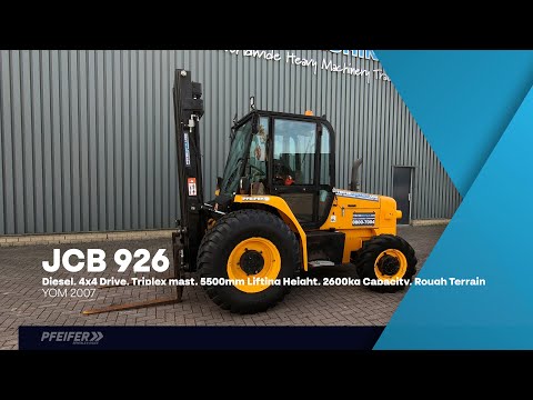 Доступно по запросуThis JCB Forklift has a valid inspection and can be sold with warranty. Inform about our conditions! Manufacturer: JCB. Typ: 926 Building year: 2007 Fuel: Diesel Serial number: 1281025 VIN: JCB92604J71281025 Working Hours: 1.894 h Engine: JCB / JCB444N2 Engine power kW / HP / RPM: 63 / 86 / 2200 Loading / lifting capacity: 2.600 kg. Drive speed: 29 km/h. Number of axles: 2. Tyres Front: 100% Tyres Back: 30% * Mast typ: Triplex stage * Lifting height: 5.500 mm * Clear View Mast Height with mast 2.90 m Lenght without forks: 3.65 m CE (Declaration of Conformity). More detailed pictures / product movie on our website. pfeifermachinery.com Above specifications are subject to change without prior notice and subject to errors
