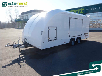 Race Transporter 4, hydraulisch Kippbar, elektrische Seilwinde mit Batterie und Kabel-Fernbedienung, Frontlukentüren, Ladefläche mit Lochstahlprofil, Flügeltüren beidseitig, Auffahrheckklappe in voller Höhe und Breite, Lichtdurchlässiges Tageslichtdach, Ersatzrad mit E-Radhalterung, Kupplungsschloss, 2 Rangiergriffe vorne, 2 Rangiergriffe hinten, Schwerlaststützrad, Zusatzrampen (die hydraulische Kippfunktion in Kombination mit der langen Auffahrrampe und den Zusatzrampen sorgt für einen extrem flachen Auffahrwinkel).
