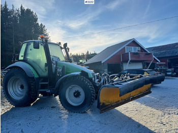 Трактор 2001 Deutz-Fahr Agrotron 120 4x4 tractor with front loader, 2 sets of tires, snowplow mount, and blade.