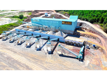 Наша стационарная дробильно-сортировочная установка производительностью 400 тонн в час состоит из бункера с вибрационной подачей 40 м3, воблерного питателя, щековой дробилки CLK-110, ударной дробилки, туннельных систем, складских и возвратных лент, складских бункеров, шкафа управления и системы автоматизации. Продукты, поступающие в бункер для питания , отделяются от грязи и ила на первой ступени двухступенчатого воблерного питателя, обходятся обходной лентой. На второй ступени воблер-питателя продукты подходящего размера для щековой дробилки отправляются на склад с помощью передаточной ленты. Щековая дробилка имеет максимальную подачу 800 мм, разбивает продукты и 1. он отправляет его на вибрирующее сито. 1. на вибросите продукты сортируются по размерам 0-40 мм, 40-90 мм и отправляются на склад. Продукты размером более 90 мм транспортируются на вторичную дробильно-сортировочную установку. Продукты, передаваемые в туннельную систему, отправляются на ударную дробилку 12-13 с. Продукты, измельченные в ударной дробилке, сортируются по разным размерам с помощью вибрационного грохота и отправляются на склад. Продукты, хранящиеся на складе, проходят через туннельную систему в соответствии с потребностями и транспортируются в податчике поддона. Вибропитатель передает продукты в складские бункеры с помощью конвейерной ленты. Все оборудование завода управляется с 3-х различных панелей автоматизации.